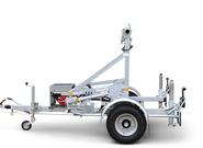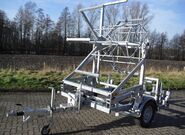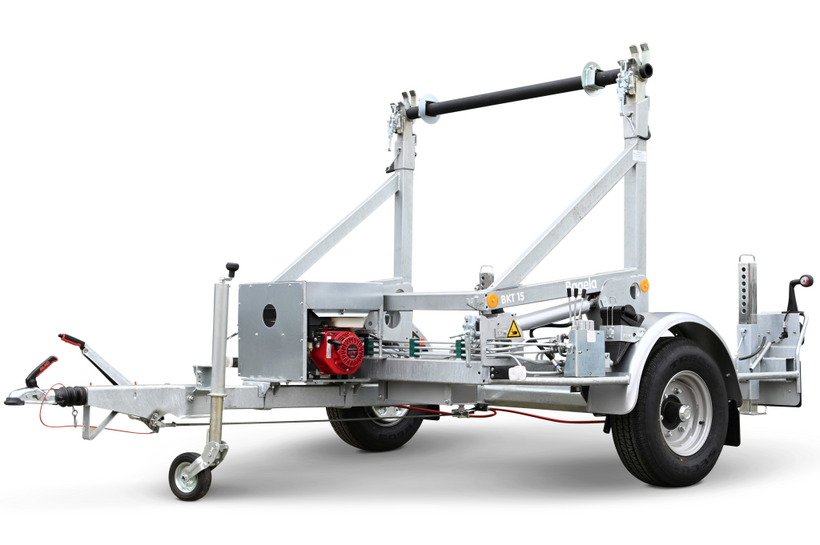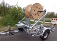 The BKT 10 – 15 gets loaded by a tilting frame which is operated by a manually operated hydraulic pump and two double acting hydraulic cylinders. Upon request, all trailers may be delivered with extendible loading jibs for picking up tube reels, for BKT 10 serially. Larger diameters of pipe coils than mentioned for the cable drums can be transported with that additional extensions.