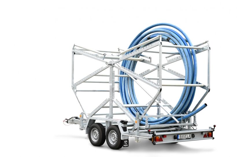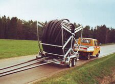 Uncoiling cages can be used also without trailer as freestanding device. Tool trailer are suitable likewise, however a safe attachment must be ensured.The Bagela cable drum trailer of the series BKT 23 and 27 is equipped with the necessary attachment for the Uncoiling cage and are able to load and unload it independently.In addition, the Uncoiling can be used in a cable drum trailer of strange brand.