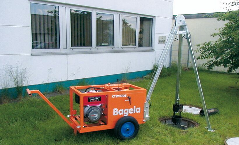 In interaction with a pipe renewal winch the KTW 1005 is used as a mooring winch. The dismountable triple beam is used for lifting and lowering of the cleaning tools.
