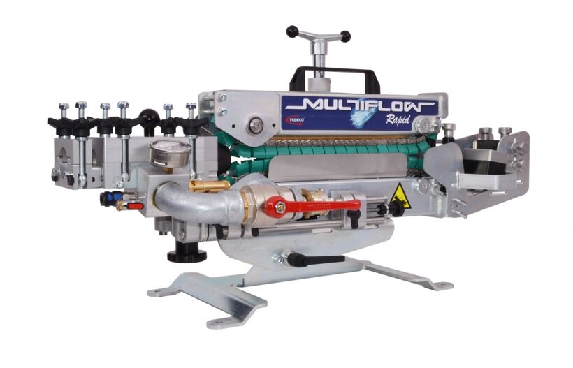 Mit dem Multiflow lassen sich mehrere Microrohre und auch einzelne Kabel größeren Durchmessers in Rohre mit einem Durchmesser von 32 - 50 mm mittels Druckluft oder Wasser einbringen. Die Förderketten werden von zwei verschleiß- und geräuscharmen Hydraulikmotoren angetrieben. Das ermöglicht ein Vor- und Rückwärtsfahren des Kabels. Flex-Block enthalten